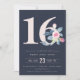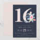 SOFT NAVY BLUSH BLUE FLORAL 16TH ANY AGE BIRTHDAY INVITATION
