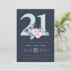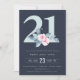 SOFT NAVY BLUSH BLUE FLORAL 21ST ANY AGE BIRTHDAY INVITATION