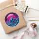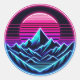 Soft Neon Mountain Circle – Minimal Retro Glow Classic Round Sticker