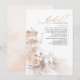White orchids, neutral roses, dried tropical greenery, and pampas grass elegant tea party bridal shower invitations