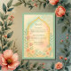This elegant pastel wedding design features a delicate watercolor arch surrounded by soft floral details in shades of blush, mint, and warm gold. The subtle golden frame adds timeless sophistication, while the gentle colour gradients evoke serenity, love, and joyful celebration. Ideal for modern Arab weddings, Nikah events, and multicultural ceremonies, it brings together beauty, calm, and refinement.