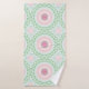 This towel pattern wraps soft mint, blush, and raspberry tones into gentle mandala symmetry. The airy geometry adds sophistication while maintaining a peaceful energy. A refreshing palette that turns everyday essentials into artful comfort.