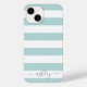 Soft Pastel Teal White Striped Pattern Grey Script Case-Mate iPhone Case