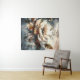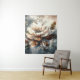 This tapestry features a cream white peony in detailed watercolor, its dark center and brown-green leaves set against a textured blue-gray background. Perfect for nature lovers, it brings a soft, ethereal warmth to your space.