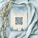 This charming RSVP card features a serene, watercolor design of evergreen trees fading into a soft blue sky, creating a peaceful, nature-inspired backdrop. The central focus is a scannable QR code, which allows guests to easily access more event details, paired with elegant serif fonts that highlight the RSVP instructions and the couple’s names. With its simple and modern convenience, this card combines traditional RSVP etiquette with a contemporary twist. Perfect for weddings with rustic, woodland, or outdoor themes, this card offers an effortless way to collect responses while adding a touch of timeless beauty.