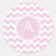 Soft Pink Chevron Retro Style Monogram Pattern Classic Round Sticker