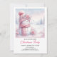 Soft Pink Coquette Snowman Editable Christmas Kids Invitation