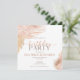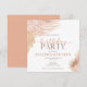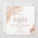 This is a Birthday Party invitation with a soft pink floral theme. The design includes a beautiful elegant soft light pink flower arrangement with pink flowers, feathers, and leaves.