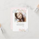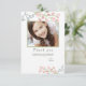 Little pink blossoms and teal-coloured leaves grace this photo thank you card for girls. The card is easy to customize with your wording, font, font colour and choice of six paper types.Not exactly what you're looking for? All our products can be custom designed to meet your needs at no extra charge. Simply contact us at askpixieprints@aol.com. Coordinating products: Soft Pink Floral Religious Invitation: Soft Pink Floral RSVP Card