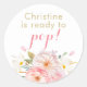 Baby Shower "ready to pop!" stickers featuring soft pink floral.