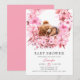 Soft Pink Floral Sleeping Teddy Bear Baby Shower Invitation