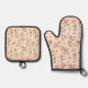 Soft Pink Floral Stripe Pattern Oven Mitt & Pot Holder Set