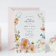 Baby shower invitation featuring a watercolor wreath of soft pink flowers. Customize with your information for the mom to be.