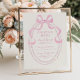 Celebrate in style with this vintage inspired bridal shower cokctail menu sign featuring a soft pink hand drawn oval frame with a bow.