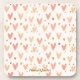 This romantic seamless pattern features hand-drawn pink hearts in soft blush tones, delicately arranged on a warm cream background and accented with subtle gold-style sparkles. The design evokes a timeless feeling of love, affection, and gentle romance, perfect for creating a cozy and heartfelt atmosphere.