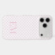 This pink polka dot iPhone case features a bold serif monogram for a look that feels classic, feminine, and effortlessly preppy. The soft pink background and crisp white dots give it timeless charm, while the oversized initials add confident personalization. Perfect for sorority sisters, bridesmaids, beach weekends, or anyone who loves a fresh coastal aesthetic.