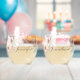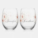Soft Pink Romantic Rose on White Wedding Stemless Wine Glass
