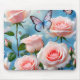 Soft Pink Rose Flower Blue Butterfly Mouse Pad