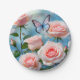 Soft Pink Rose Flower Blue Butterfly Paper Plate