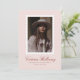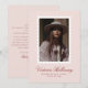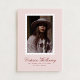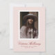 Modern one photo graduation announcement featuring a soft pink background, white postage stamp–style frame, and elegant red script typography. The gentle color palette creates a warm, refined look that feels modern, feminine, and timeless.