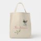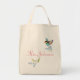 Our custom tote bag will make anyone smile adorned with the a cute bird with purple and blue florals. Customize with your name. View our full line of products in our Zazzle store.
