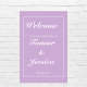 Pretty, modern, minimalist and trendy wedding poster sign features a soft pastel purple background (Pantone's 2022 colour pick "Orchid Bloom") with white customizable text blocks in modern fonts