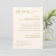 Offrez-vous une réception de mariage avec notre menu Soft and Romantic Gold Cream Wedding Reception Menu. Rayonnant de délicates teintes crème et orné de subtiles touches dorées, ce menu incarne le parfait mélange de raffinement contemporain et d'affection intemporelle. L'écriture moderne raconte vos sélections culinaires avec un air de sophistication, tandis que le design minimaliste assure que votre menu brille comme la pièce maîtresse de votre célébration culinaire. Un texte simple mais élégant présente chaque plat, permettant aux saveurs de briller en harmonie avec l'opulence sobre du design. Ce menu est plus qu'une liste de cours, c'est un témoignage du soin et de l'attention que vous avez apporté à chaque détail de votre événement. Un message de remerciement sincère fait honneur à la base et exprime votre gratitude à vos invités estimés pour avoir participé à votre célébration. Choisissez notre menu Soft and Romantic Gold Cream Wedding Reception Menu pour enrichir votre réception avec une touche d'amour et d'élégance. Ce n'est pas seulement un menu, c'est un reflet de votre voyage et une introduction à l'inoubliable fête qui vous attend.
