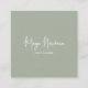 A sleek and stylish square business card featuring a solid and elegant soft sage green background with botanical vibes with your name or company name in an elegant signature script. Fully customizable to match your brand identity—edit the background colour, text, and logo effortlessly.