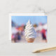 Delicious soft serve ice cream on summer day in urban setting postcard