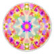 Knob in a digital tie dye pattern in soft, spring flower inspired, shades of pink, green, peach and violet