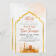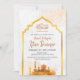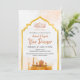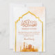 A beautiful and minimalist invitation featuring a soft orange watercolor wash with a gold mosque silhouette and an elegant Islamic arch frame. This clean and modern design is perfect for Iftar invitations, Eid celebrations, Nikah ceremonies, or Aqiqah events. Fully customizable text to suit your special religious gathering.