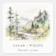 Soft Woods Mountain Landscape Sketch Wedding Square Sticker