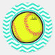 Cool, cute yellow softball design on aqua, turquoise green and white chevron stripes pattern. Great gift for softball players or sports fans!