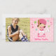 Girl wearing pink softball uniform holding a stick, ready to hit a softball ball. Cute pink and white polka dots pattern on the background. Written "Thank You". Some elements by Zenware Designs.