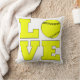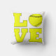 Softball Love Pillow White and Yellow Throw Pillow: A cool gift for softball lovers. Would look good in the bedroom, and would be nice to bring along on road trips to take naps on the bus! Bright yellow - the colour of a softball - on the backside.