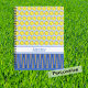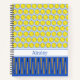 Softballs create a bright polka dot pattern on a blue background on the front and back of this notebook. On the front, softball bats are also used to create a further pattern, and there is a white band for you to personalize with a name or other text.