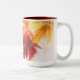 This 15-ounce ceramic mug features an image of autumn leaves in warm colour tones, digitally altered to achieve a softened, smudgy effect. The inside glaze of the mug is maroon to match the darkest leaf. The mug is both dishwasher and microwave safe. Feel free to contact me through Zazzle if you have questions about this mug or would like help transferring this design to a different item. I'm happy to help to ensure the image fits correctly.