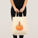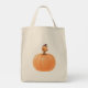 A sweet Halloween tote featuring a cute capybara sitting on a pumpkin in warm pastel tones.