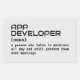 This software developer funny definition sticker makes a hilarious gift for coders and techies who love programming humour. Perfect for decorating laptops, notebooks, or office gear. A great conversation starter for programmers, app developers, and IT professionals.