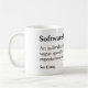 This humorous mug defines what a software engineer is: "An individual who converts vague specifications and unrealistic expectations into usable software."