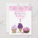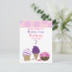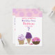 Une invitation amusante et fantaisiste à l'anniversaire avec une bordure rose avec des taches violettes claires. Un cupcake tourbillonnant, un cône glacé décadent et un gâteau délicieux et élégant l'accentuent. Customisez avec toutes les informations de votre parti selon vos besoins.