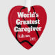 Personnalisé aidant à la carrière L'ornement de Noël du Coeur Rouge est une excellente idée cadeau pour la personne qui s'occupe d'un ami ou d'un être cher. Les deux côtés de l'ornement ont un arrière - plan rouge foncé avec un stéthoscope en silhouette noire et l'expression "Meilleur soignant du monde" ainsi que le nom et l'année customisés. Aussi une excellente idée cadeau de Noël!