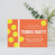 Une simple invitation sportive pour un anniversaire de tennis, des événements de tennis ou une fête sportive. Dispose de balles de tennis simples art sur un court de terre rouge avec une ligne blanche et au fond un motif de balle de tennis. Customisez avec votre propre fête d'anniversaire ou les détails de l'événement. Conception et graphismes par Sarah Trett. www.sarahtrett.com pour www.mylittleeden.com