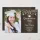 Invitation de la fête de remise de diplômes rustique avec votre photo. Motif en bois, lampes de fées à cordes, jarres de maçon, police de script et un casquette de goût.