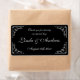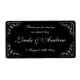 Fête de mariage florissante et torride, préférez les étiquettes de bouteille d'eau. Autocollants de bouteilles d'eau en noir et blanc sur mesure avec coins tourbillonnant. Modèle do-it-yourself personnalisé avec typographie stylisée de calligraphie. Design vintage chic avec le nom de la mariée et du marié plus la date du mariage. Utilisez l'eau de source comme décor de table classe ou merci pour les invités à la fête. Couleur arrière - plan personnalisable pour correspondre à votre thème. Merci de partager notre journée spéciale. Aussi agréable pour un dîner de répétition mariage, fiançailles, bachelorette, anniversaire, douche nuptiale etc. Peut également être utilisé pour les bouteilles de vin.