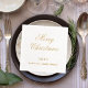 Personnalisez et ajoutez une année et un texte. Véritable feuille d'or texte : Joyeux Noël. Une serviette blanche.