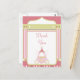La fête d'anniversaire de cette fille merci carte postale a un thème de princesse. Il y a une frontière pois rose, verte et grise avec un arrière - plan rayé. Au centre, il y a un adorable chariot et merci écrit ci-dessous. Au dos, vous pouvez facilement customiser votre message de remerciement. ©2010 NOIRS STUDIOS DESIGN/BLACKLEAF. com