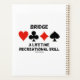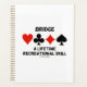 Si vous jouez au jeu du pont ou du pont en double, vous profiterez de ce planificateur avec les quatre costumes de cartes avec le pont disant "Bridge A Lifetime Recreational Skill". Pas besoin d'être un professeur de pont ou un joueur de pont passionné pour comprendre les avantages de l'apprentissage de cette compétence récréative qui gardera votre esprit occupé pour une vie!