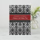 Soixante-dixième invitations de fête d'anniversaire de coutume en rouge élégant, motif vintage de damassé florale classique noire et blanche. Ajoutez vos détails de nom et de partie pour une invitation unique et élégante de fête d'anniversaire.