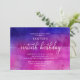 Belle invitation de fête de 60e anniversaire avec une police de caractères chic sur un arrière - plan d'aquarelle violet et rose. Retournez notre invitation pour voir un retour correspondant pour une touche spéciale supplémentaire. Disponible dans notre boutique en d'autres combinaisons de couleurs.